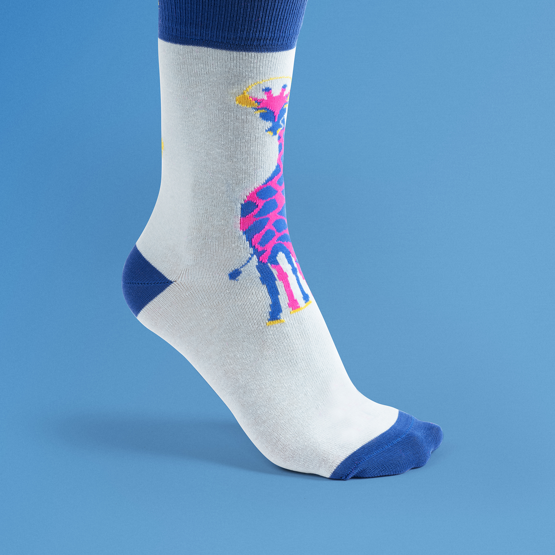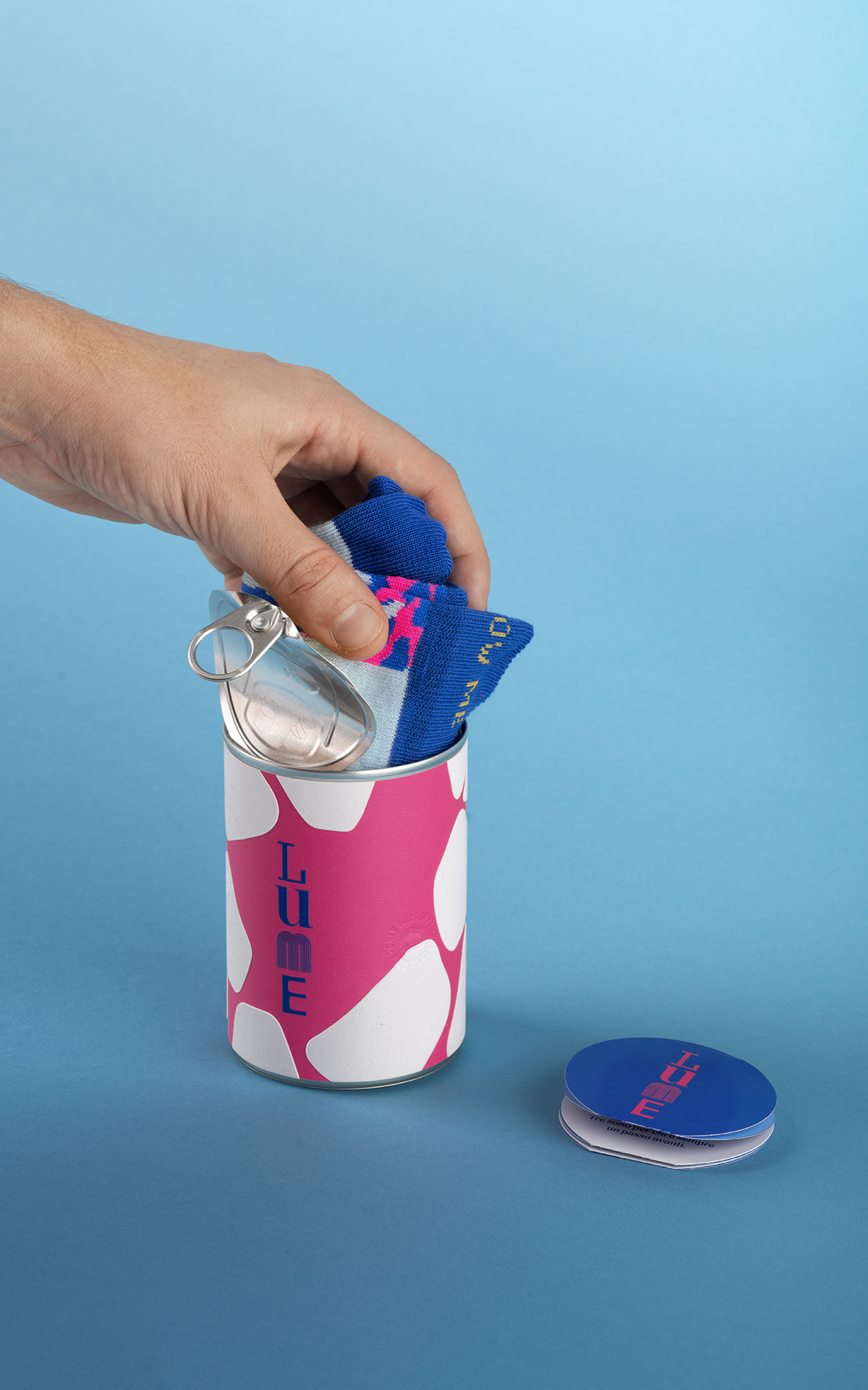 Lume is a trio of personalised socks, affectionately known as “the divine trio of socks.” Because why sell just a pair when you can sell three? Is three the perfect number? Not really. Three, so you’ve always got an alternative. And so you’ll always have a spare, no matter what happens. Have fun with them and let them be part of your biggest adventures. Each sock carries a different message, and there’s no right way to wear them—no rules, no order, no wrong turns. The direction is entirely up to you. The only real guidelines? Freedom and irony. (L)oving Lume socks is easy, if you follow these three rules: (U)sing only one sock is pretty daring, but with three you’re really on another level. (M)ix them up whatever way you like and don’t take yourself too seriously. There’s no right or wrong – only your style. (E)xtend your eyes upwards like a giraffe – from up high, the horizon looks that little bit closer. Lume is an invitation “to see like a giraffe—look ahead. From up high, the horizon always feels just a bit closer.”