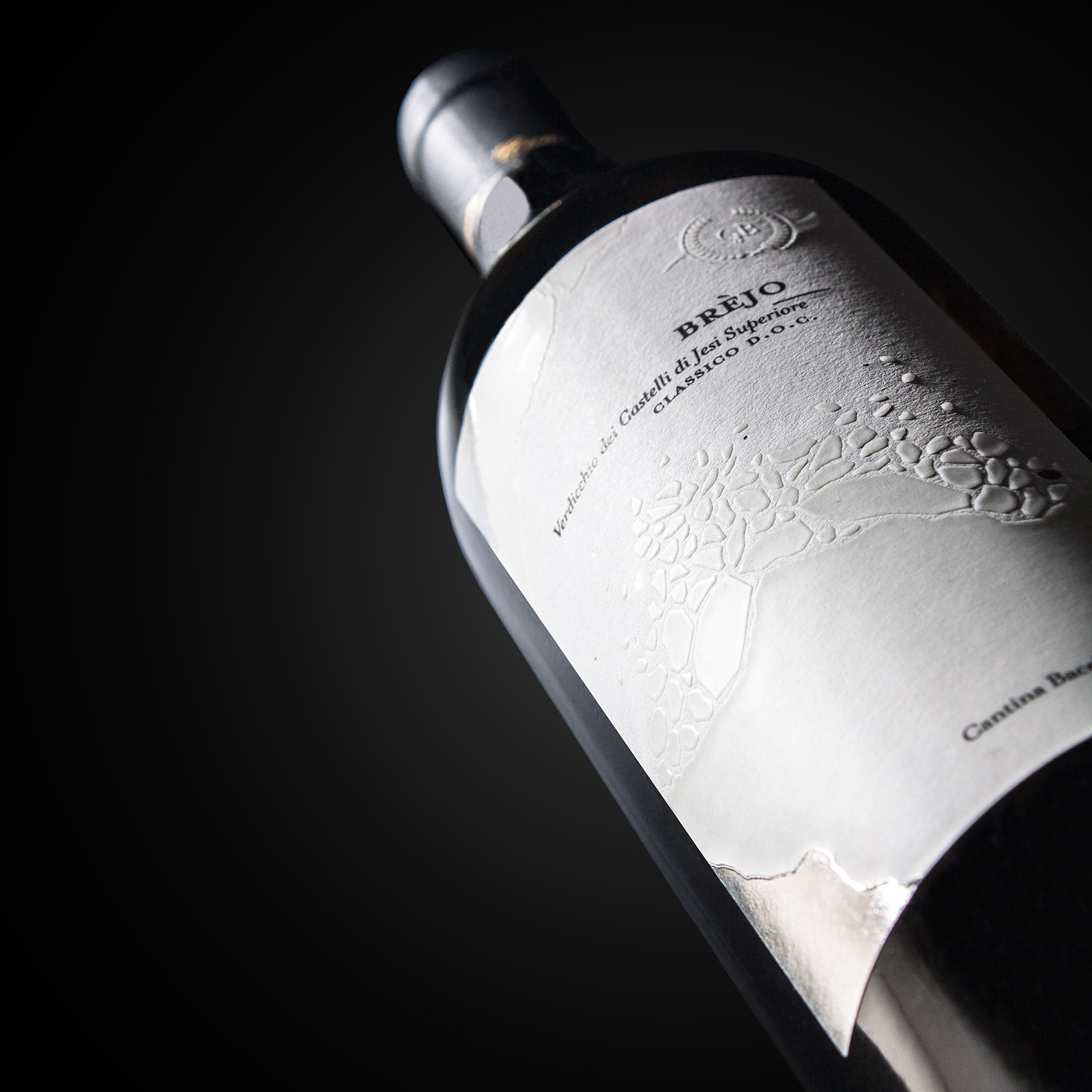 The Bacelli winery was born in Cingoli, a village known as “ the Marche region balcony” for its stunning panorama, located in the centre of Italy, halfway between the Adriatic sea and the Sibillini mountains. Bacelli’s vineyards cover an area of six hectares and the love of this family for wine has been handed down for nine generations. The most delicate processes of production are still handmade, in order to dedicate a targeted care to plants and to get the best selection of grapes for their wines. Expressing the greatest respect for Nature, Bacelli winery aims to the goal of reducing soil pollution and environmental impact by using biodegradable materials in pruning and tying their vines. The Bacelli vineyards boast a very special feature: the ground underneath the vines is crossed by a vein of calcite, a precious mineral that enriches their Verdicchio with unique characteristics. The new labels, Brejo and Monte Circe, were inspired by this specific mineral composition of the soil. In order to replicate this peculiarity of their wineyards, no coloured inks were applied: the subject was printed by using a matt UV painting with Braille effect, to reproduce the shapes and colours of these very ancient mineral rocks, and to create a tangible and visual contrast with the porosity of the chosen paper. Each subject in the two series of labels depicts a different fragment of crystal broken off from the mineral vein of calcite that runs underground the wineyard soil. To distinguish the two wines, in addition to the matt UV varnish with Braille effect, hot pressing was used, too: Brejo (a D.O.C. Superior Verdicchio wine) is featured by a silver hue, while Monte Circe ( a D.O.C. Classic Verdicchio ) by a copper one.