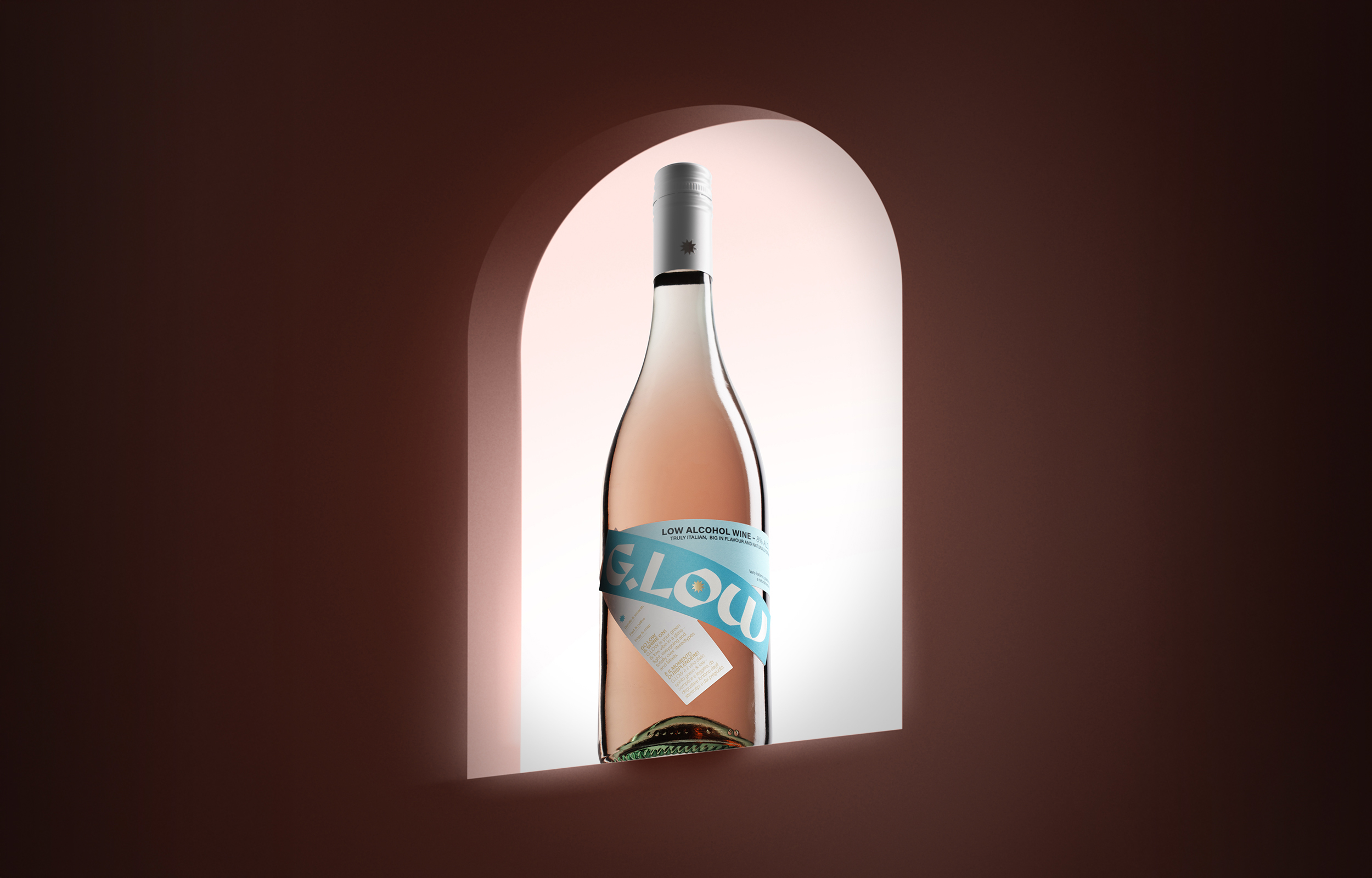 The creative process behind G.Low began with a clear and inspiring brief from the client: “To offer an experience of conviviality and lightness through an innovative low-alcohol wine that redefines the aperitivo ritual with taste, freshness, and a touch of originality. With fully sustainable packaging, we are committed to promoting a responsible lifestyle that celebrates the pleasure of good drinking without compromising environmental respect.” From this vision, we developed a creative path that merged visual provocation with strong, value-driven coherence. After a thorough phase of research and brainstorming, we shaped a concept that breaks with traditional wine label conventions, aiming to speak to a young, conscious, and curious audience. Our main inspiration came from eco-brutalism: a movement that combines the architectural rigor of brutalism—with its geometric forms, concrete structures, and raw aesthetic—with the spontaneous, harmonious return of nature. This contrast between structure and vitality guided us in creating a bold yet balanced and light visual aesthetic, just like the wine it represents. The choice of materials reflects this philosophy: we used Tintoretto Gesso Re-play paper, developed through a pilot project in collaboration with Fedrigoni, which reuses production waste from Cantine di Verona to create an elegant, natural, and fully recycled paper. A tangible symbol of the circular economy. Finally, to add an experiential dimension and make the product even more memorable, we introduced thermochromic ink: transparent at room temperature, it activates as it cools, revealing a black graphic at the wine’s ideal serving temperature. An unexpected detail that engages the consumer and makes the aperitivo ritual even more iconic.