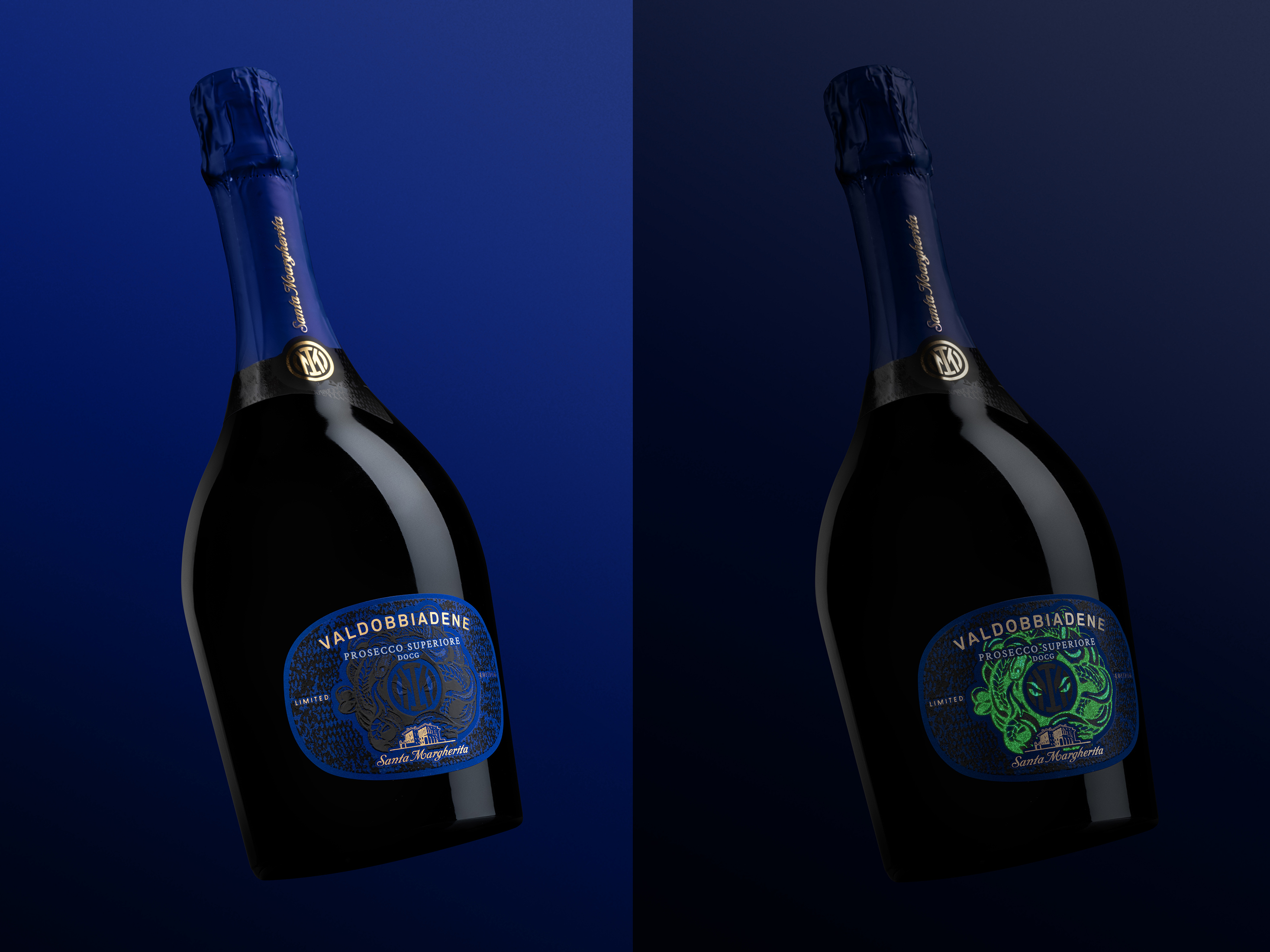 What do a prestigious winery like Santa Margherita Gruppo Vinicolo and an equally prestigious football team like FC Internazionale Milano have in common? Courage, a forward-looking approach and the will to excel. The creative concept of this Prosecco Valdobbiadene Superiore, dedicated to one of the teams that has written and continues to write the history of Italian football, unites common intents, goals and values. The texture of the label echoes both the current team uniform and the club's historic symbol: the snake, the protagonist of a luminous embossed varnish. Sophisticated printing techniques guarantee a distinctive and emotional result, which is essential to enhance the product and its positioning.