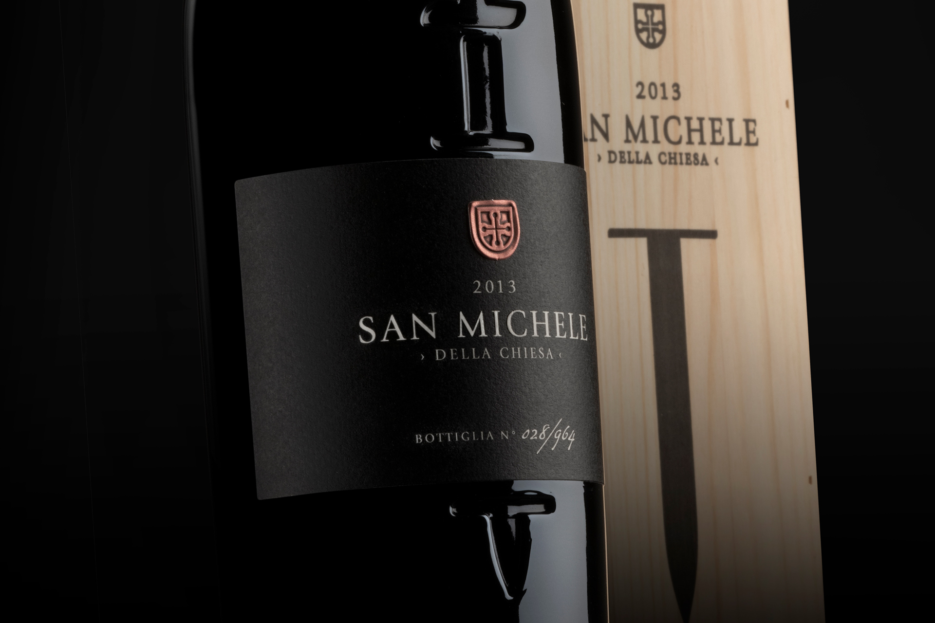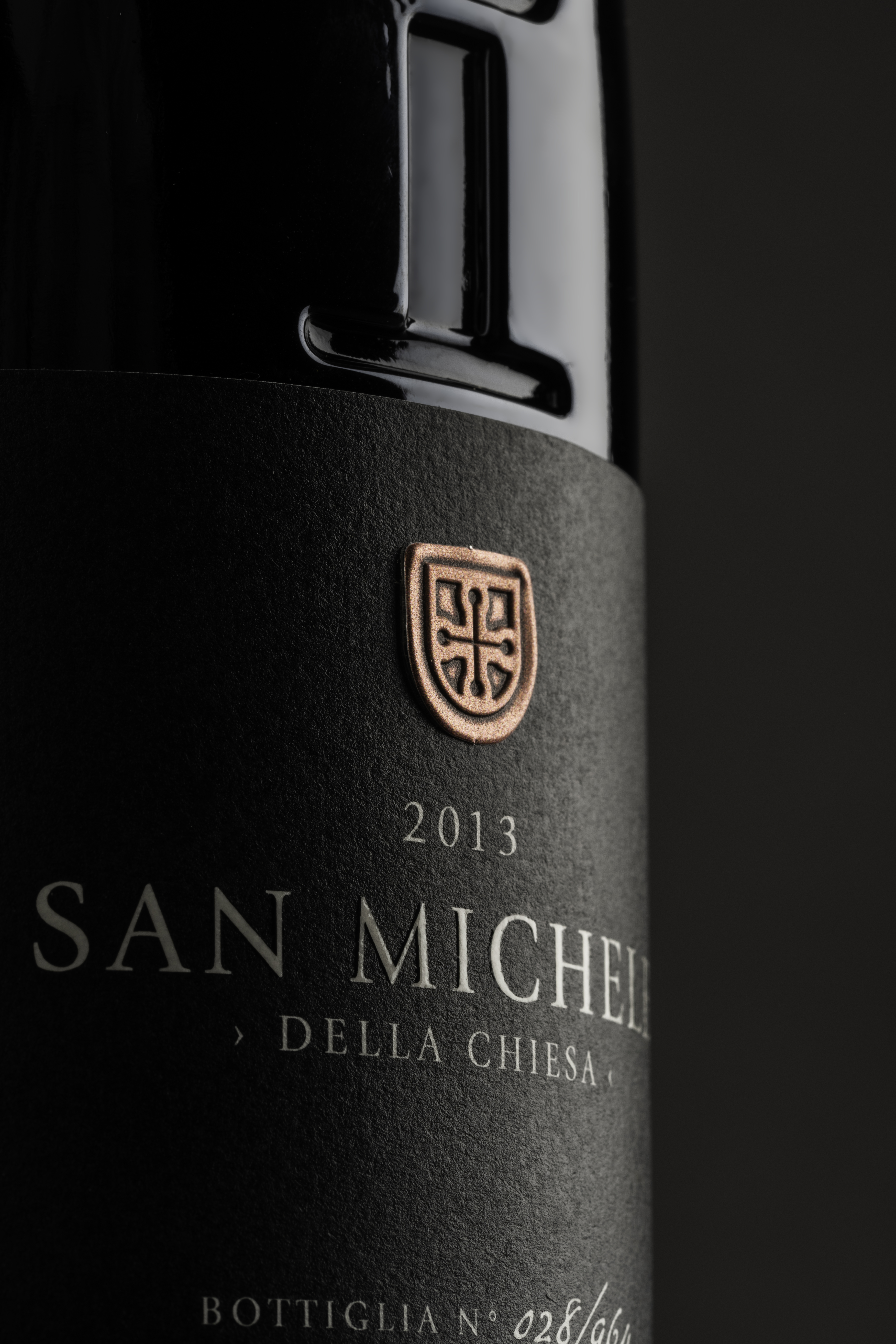 A small church and its ancient orchard; a few vines that carry a centuries-old legacy in their branches, together with a name: Saint Michael, the leader of the heavenly armies. The story orbits around a symbol of strength and the very idea of protection, which we have given material form to by impressing the sword of Saint Michael onto the bottle. The black label, as simple and solid as stone, intersects with the sword. An elegant Roman font, the year of production and the serial number of the bottle are the only elements needed to transmit a strong sense of identity, as strong as Saint Michael’s metallic shield.