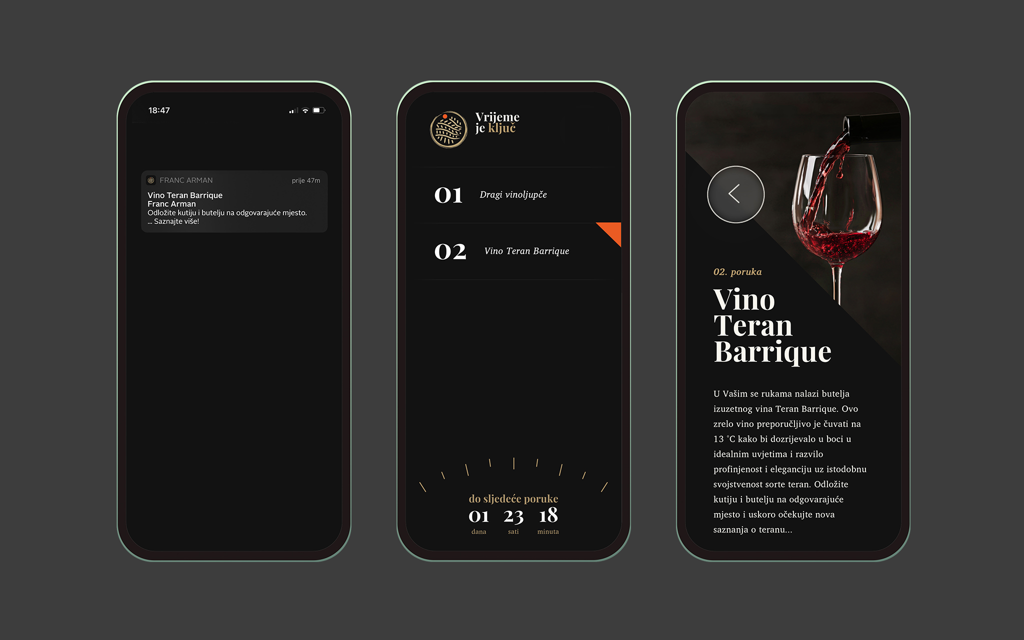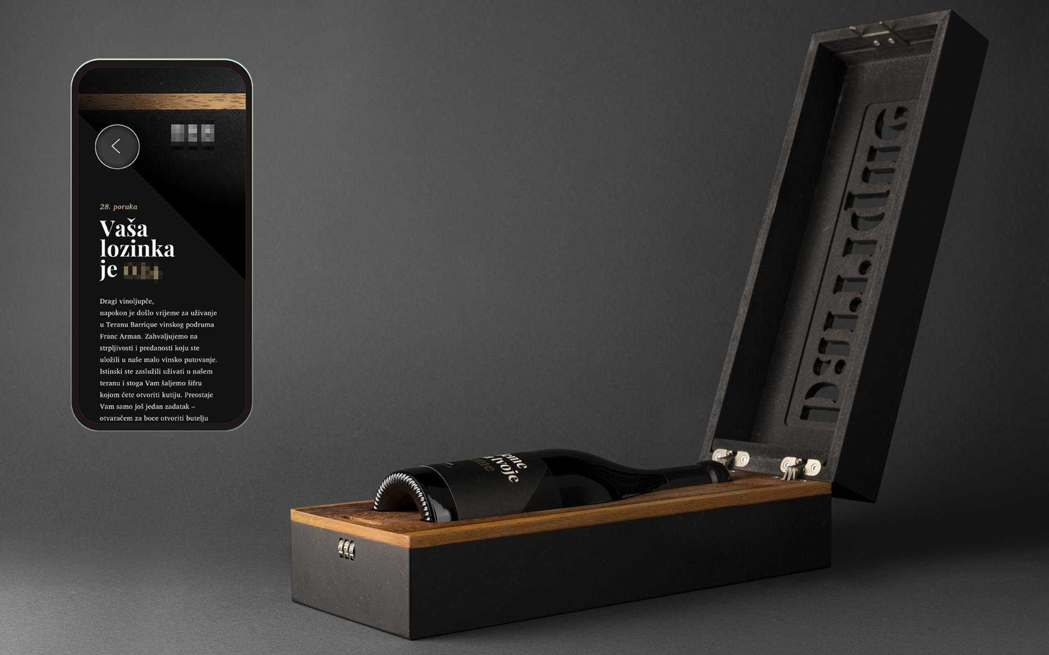 The history of the Franc Arman Winery dates back to 1850, when the Arman family ancestors began growing vines in the village of Narduči near Vižinada. Respecting centuries-old knowledge, winemakers Franc and Oliver continued to nurture this tradition with passion. Today, the winery produces top-quality wines, such as Teran Barrique, a limited-edition red made from hand-picked grapes. Our task was to find a conceptual solution and design the packaging for this special wine. Red wines like Teran age better with time. However, due to impatience or inexperience, many open their bottles too early. This special edition, defined by its traditional aging, requires patience. That’s why we locked the Teran Barrique bottle in a box, making it inaccessible. Only a cut-out inscription offers a glimpse of its contents. The wine ages while the owner learns. An app accessed via QR code sends weekly notifications about oenology and winemaking. When the time comes, the app provides a code to open the box. Upon opening, the wine enthusiast sees the words “It’s time for your time.” The initiative generated significant media attention, increasing brand awareness and driving sales up 31% over the year. “It’s Time for Your Time” has won the prestigious Cannes Lion, and awards at Cresta, Golden Drum, and BalCannes.
