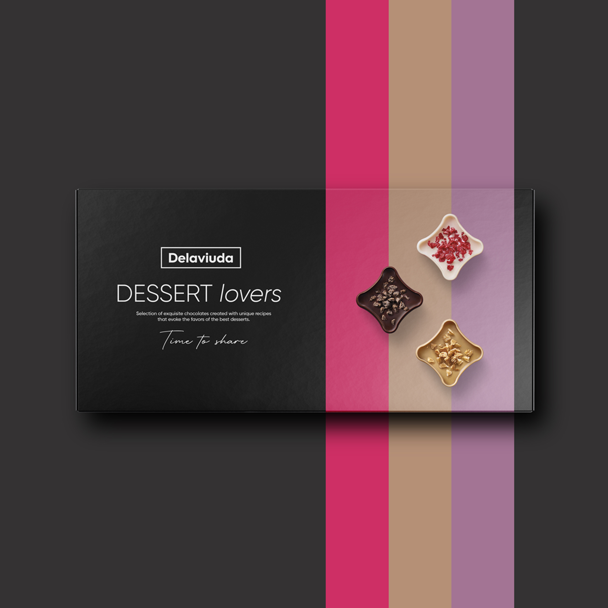 Delaviuda is an almost centenary company and the most iconic and traditional Christmas brand in Spain. With the aim of expanding its presence beyond the Christmas campaigns and looking to the international market, it is launching a new range of products: chocolates specially created to enjoy something as Spanish as the after-dinner moment. In addition to the order of this new packaging, Delaviuda requested a restyling and an update of the brand. The main objective: to give it a more contemporary and refined image.