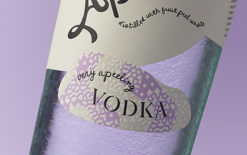 Studio Guild developed the name ‘A’Peel’ as a clever nod to both the source material and the product’s ‘appealing’ novelty, with a playful tone-of-voice woven throughout – a very a’peeling vodka, a very a’peeling taste, a very a’peeling innovation. The visual identity reflects this narrative: a handcrafted, peel-like font, an organically shaped label that mimics fruit peel, and a nostalgic fruit sticker tamper seal adding character and charm. The bottle features embossed dimples that resemble citrus peel, enhancing a truly tactile experience.