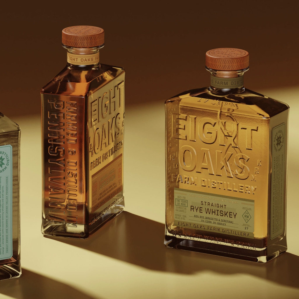 Eight Oaks Farm Distillery’s rebrand centers on packaging design that brings its “grain to glass” story to life. Custom flask-inspired glass honours Pennsylvania’s working-class roots while boldly showcasing the liquid and new branding.