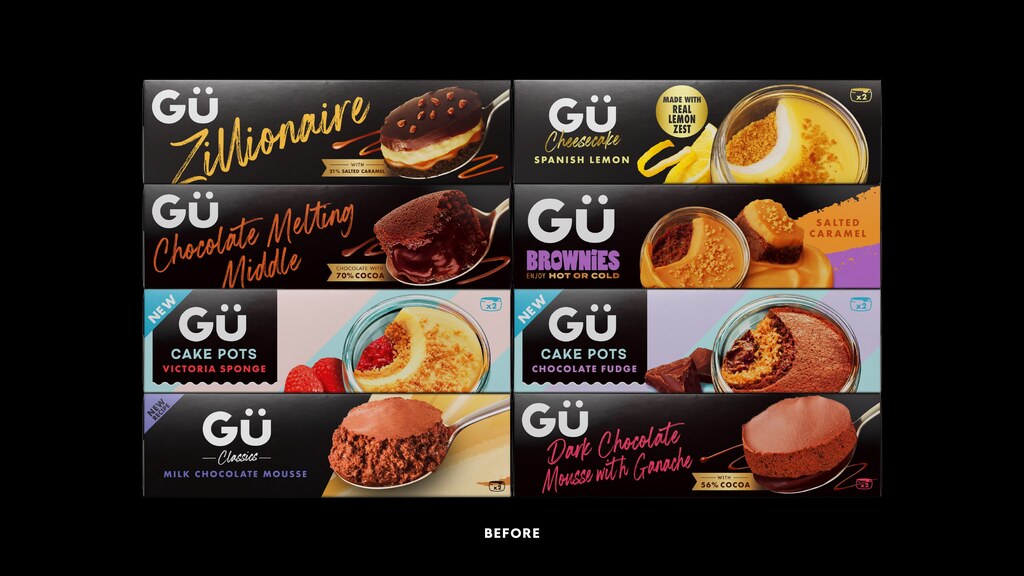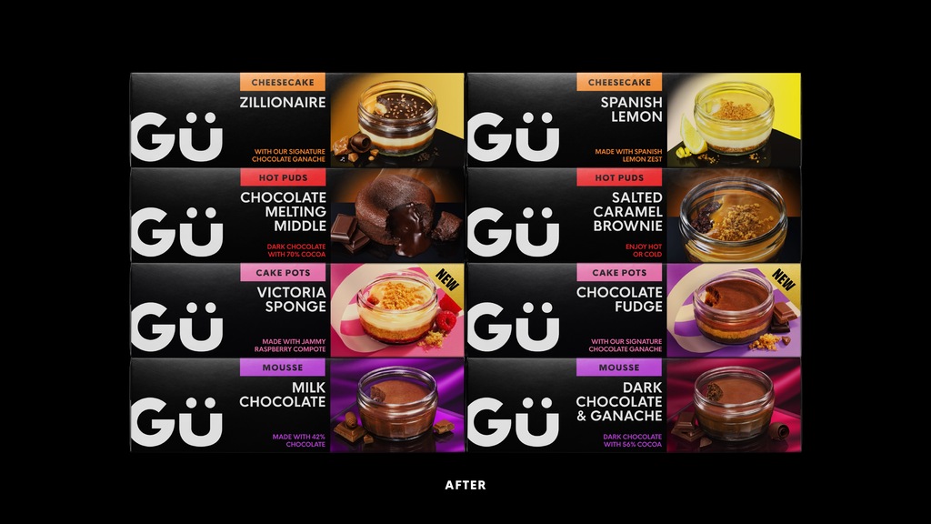 Derek&Eric design strategy was to reclaim Gü’s distinctive essence in a contemporary way by going back to the start; a time when the brand was unapologetically indulgent and just a little bit cheeky.