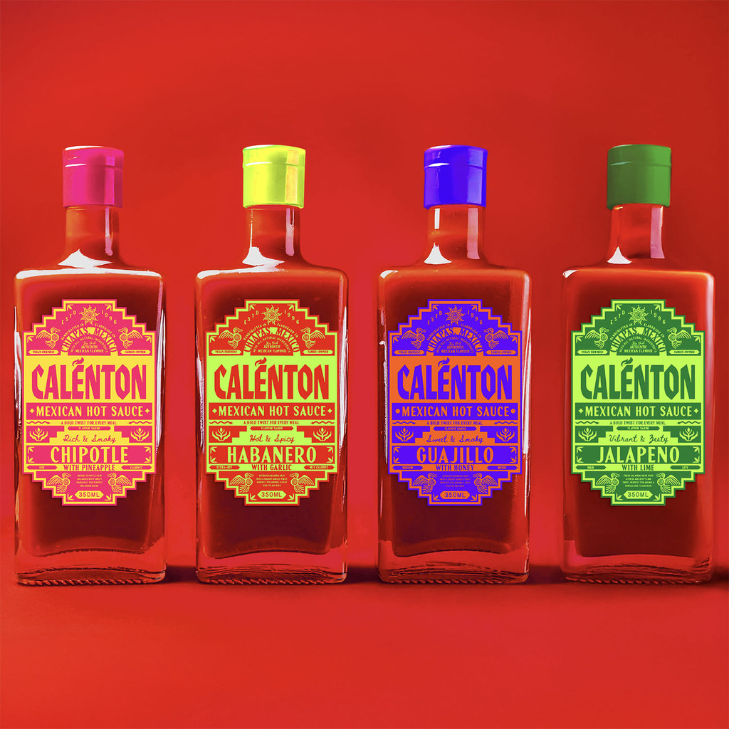 The colour combinations, typography, and illustration style were all carefully considered to feel spicy (with a nod to the flavour cues of each bottle), modern, and instantly recognisable as Calentón, while still respecting the product’s cultural roots and sense of place.