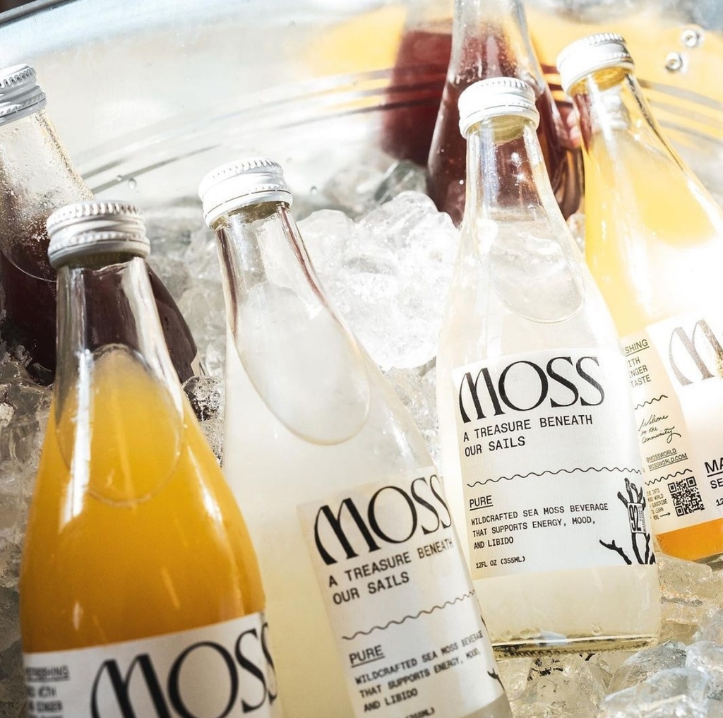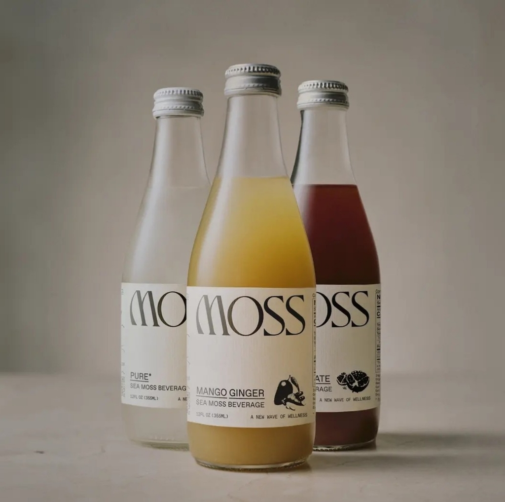 The bottles are designed for reuse or recycling, with a home-compostable label, embodying Moss's commitment to environmentally friendly practices. The packaging maintains simplicity, mirroring the product's purity and integrity. Its minimalistic design lets the beverage speak for itself, emphasizing its natural essence.