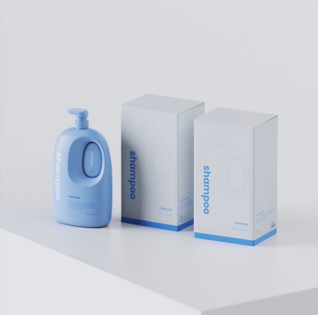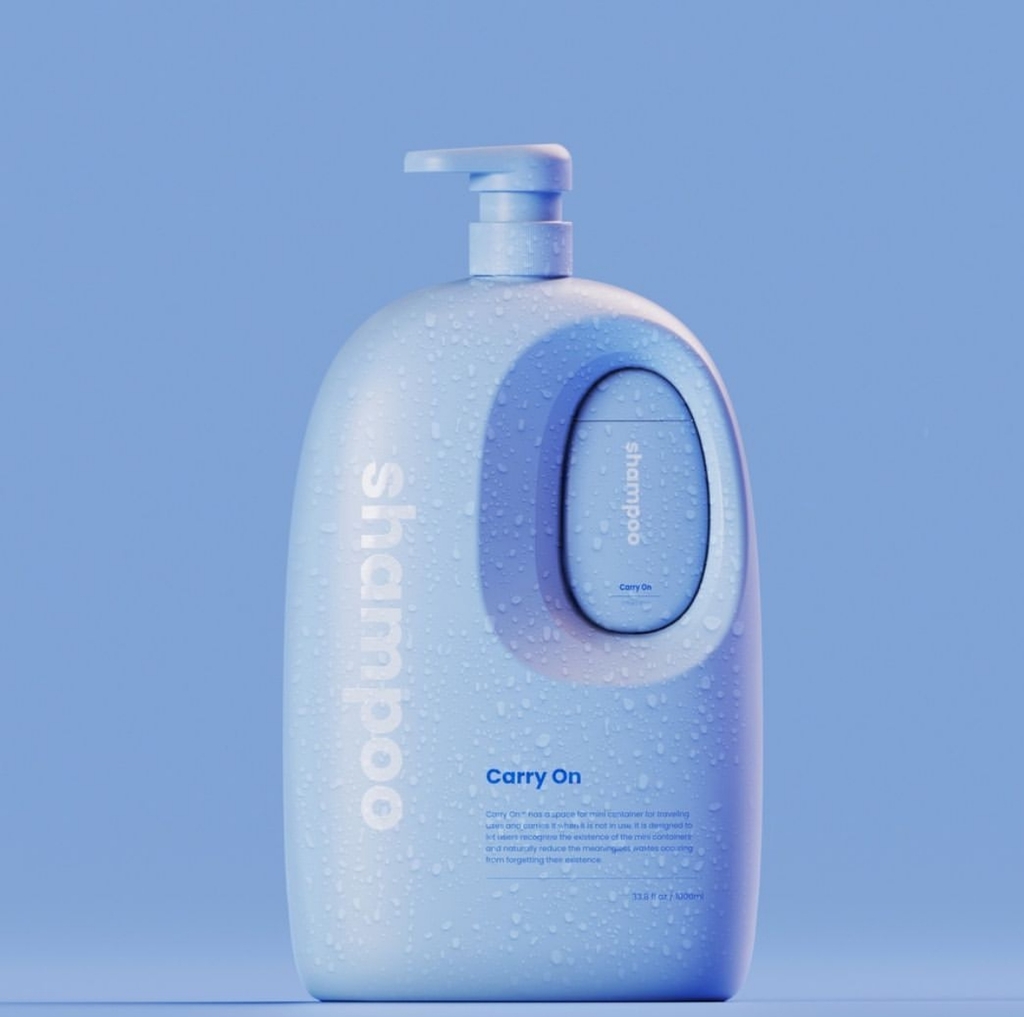 The designer combines mini-sized toiletries with the standard container, aiming to make mini ones more recognizable and eventually reduce their waste.