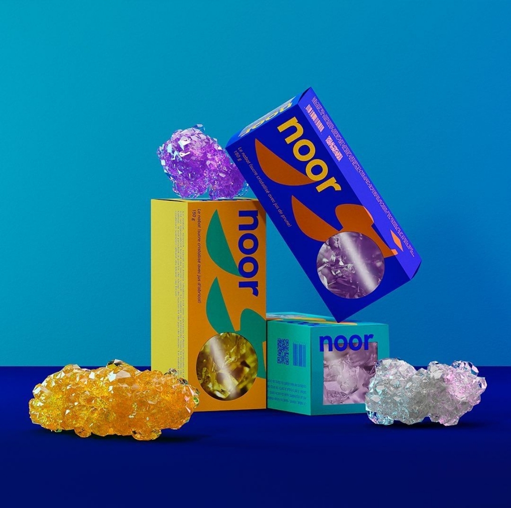 The designer opted for the Persian spelling of the brand name to serve as a distinctive pattern within the identity. Moreover, the microscopic view of the product reveals geometric figures resembling precious stones, enhancing the overall appeal.