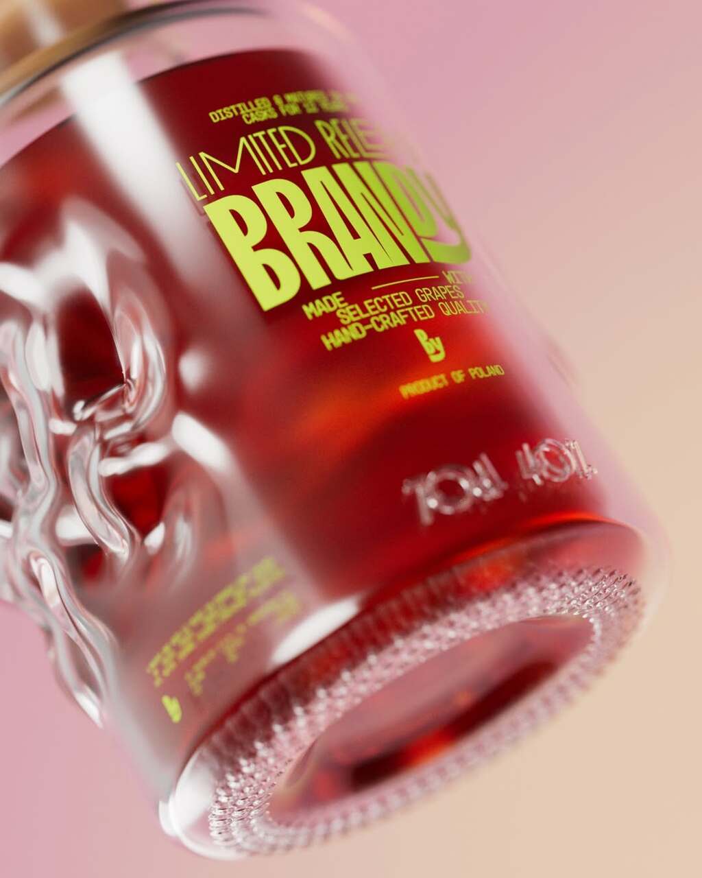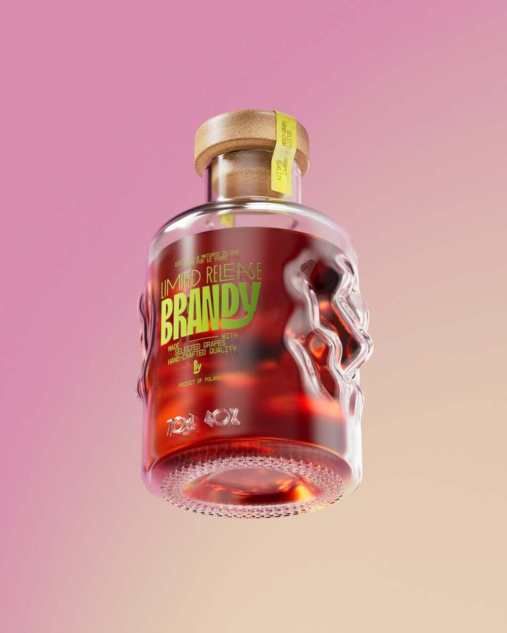 Sculpted glass with embossed details creates movement and depth, while bold neon typography demands attention. A premium wooden stopper and vibrant label challenge tradition, making this limited-edition brandy a true collector’s piece.