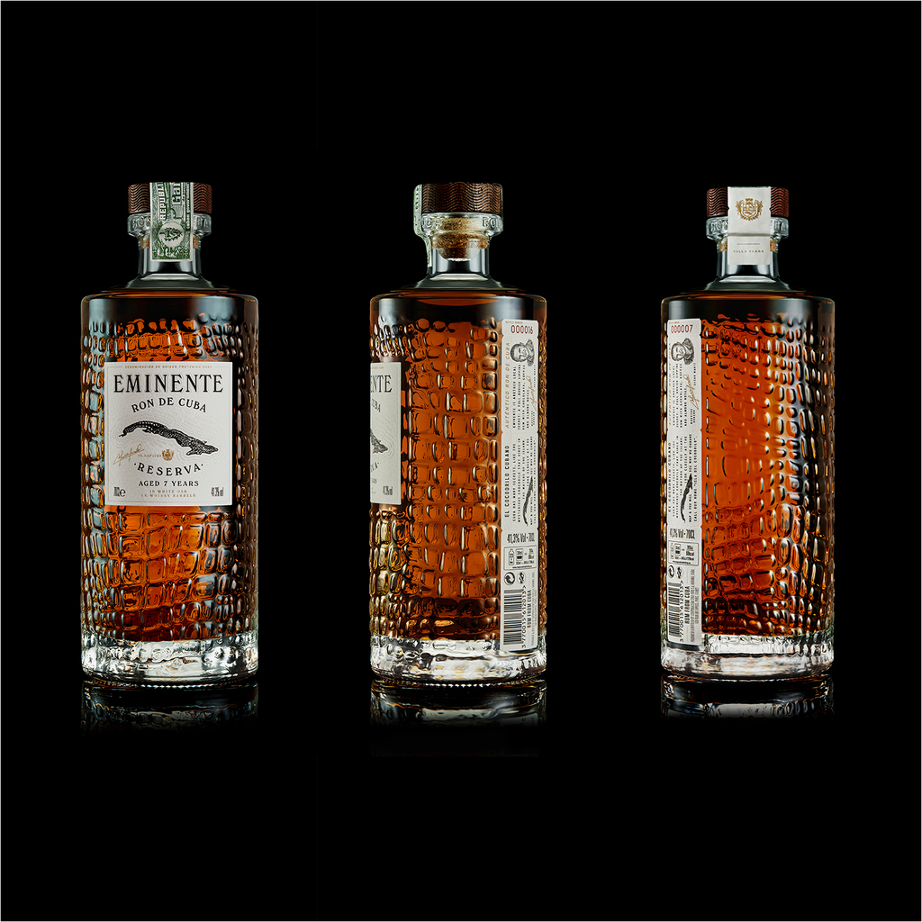 This pack is inspired by Cuba's "Isla del Cocodrilo," which has a unique crocodile-shaped logo and a textured glass bottle. The bottle is eco-friendly, as it can be repurposed as a candle holder, vase, or water jug. The labels are made from recycled materials, with the front label displaying the brand logo and product description using special techniques. The back label looks like a train ticket, making each bottle unique with individual numbers.