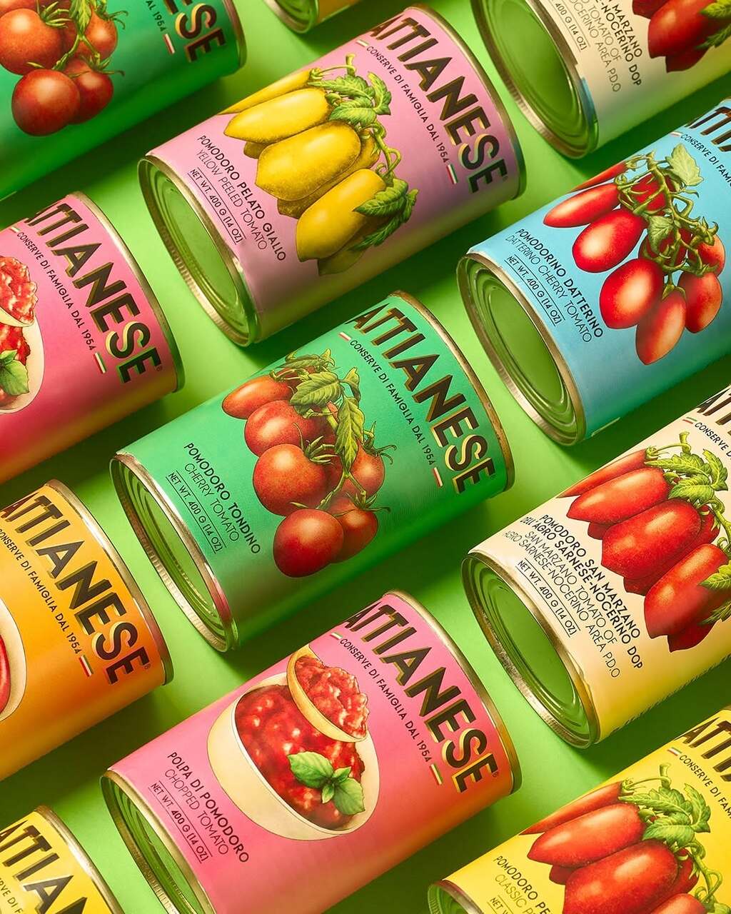 The packaging is inspired by vintage Campanian canning labels that once brought regional tomatoes to the world. Hand-drawn illustrations, vivid colours, and a clean layout revive the charm of 1950s design, creating a look that feels both nostalgic and contemporary.