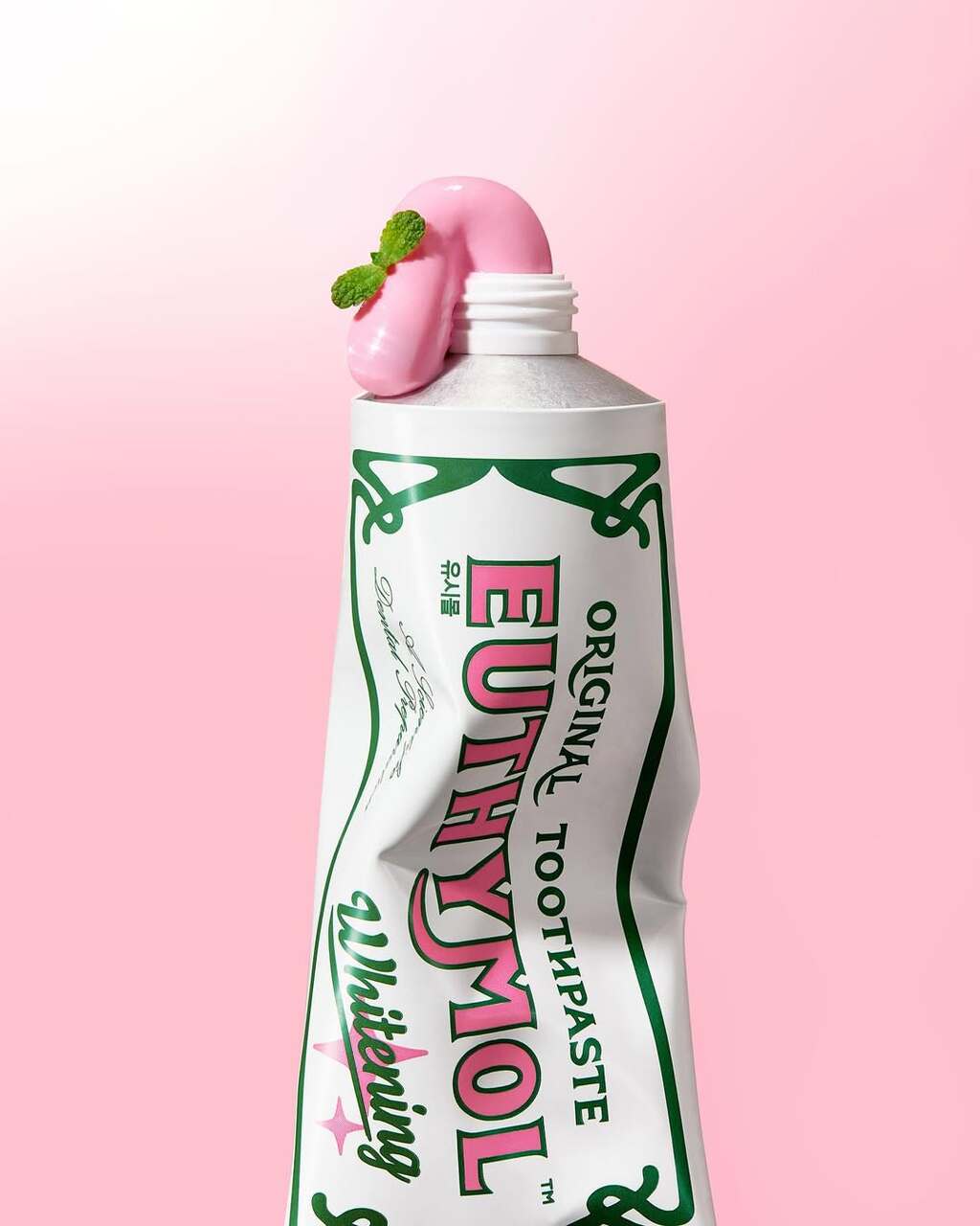 The packaging pairs retro charm with a playful edge, featuring bold pink typography framed by elegant green flourishes. The vintage-inspired design stands out with its quirky aesthetic, while the candy-pink cap adds a sweet, contemporary twist.