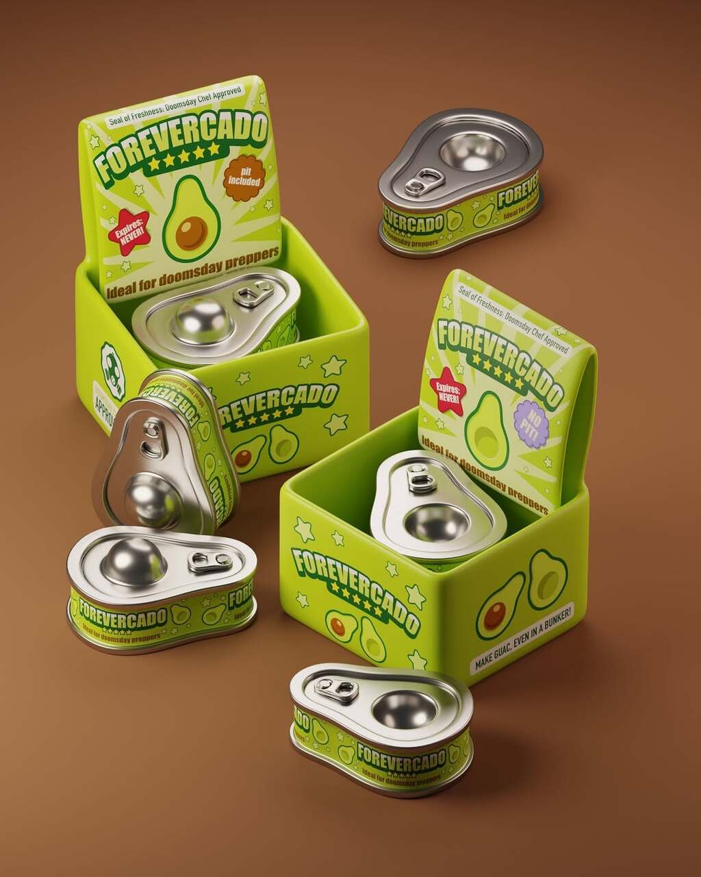 This avocado-shaped tin mock-up preserves the creamy goodness and nutrients of a ripe avocado, offering a playful and functional design that keeps your avocado fresh for eternity