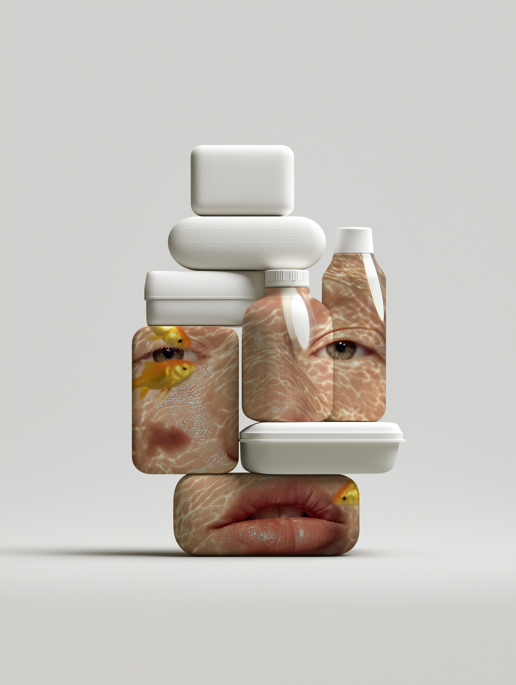 The link between these hyperrealist images and packaging may not be immediately obvious. But for Filippi and Moschin, the connection is essential. Packaging design, especially in the luxury sector, thrives on visual allure: the shimmer of a surface, the intimacy of touch, the promise of sensory immersion. Hyperrealist AI photography, with its ability to generate surfaces that do not exist yet feel palpably real, offers an unprecedented resource for the field.