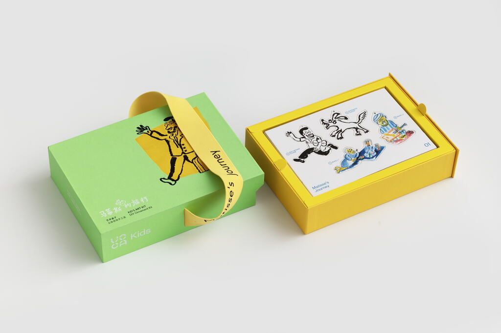 We extracted elements from the ‘Matisse’s Journey’ book—Matisse’s figure, landscapes, animals, and objects—to let kids craft their own adventure stories. Bright colors and hand-drawn illustrations echo the book’s whimsy, while retro suitcase-inspired packaging with tactile elastic handles and layered "drawers" invites exploration. The challenge lay in balancing functionality and artistry: simplifying complex 3D structures for children, ensuring safety and durability, and refining details like handle elasticity and weight. For example, we rigorously tested the drawer mechanism to prevent tearing and adjusted handle dimensions for small hands.