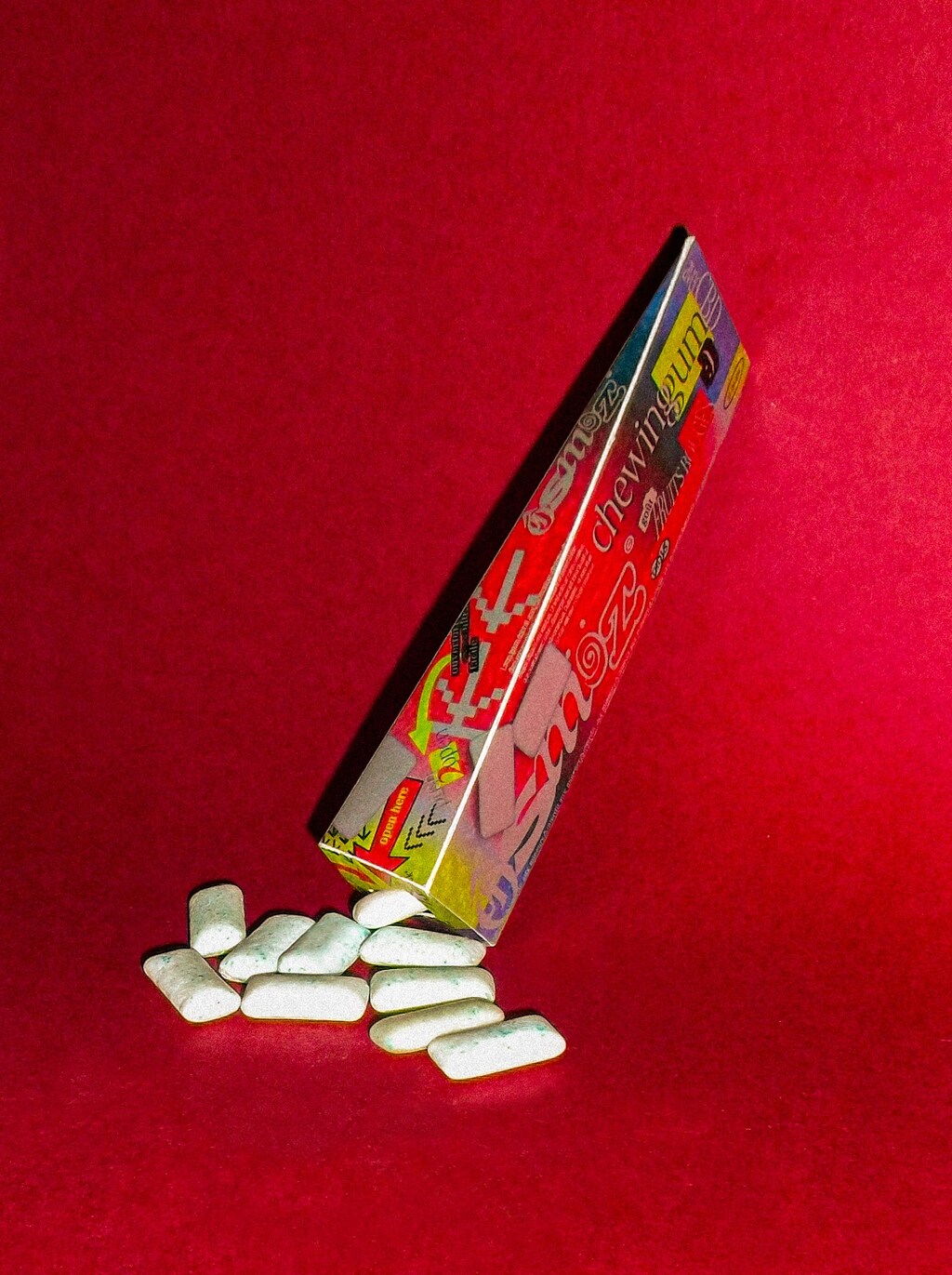 A chaotic harmony emanates from Osmoz. Saturating its packaging with graphic elements, it takes the opposite tack to the market and positions itself as an outsider. Osmoz follows the AntiDesign approach, which encourages experimentation and rejects standardisation. Design thus regains its uniqueness, mirroring the early days of digital creation in the 2000s. A plethora of completely outdated effects accumulate on the packaging: drop shadows, curved or even distorted text, rough gradients, and overlapping colours. An aura emanates from it, inviting everyone to see an alternative to reality.