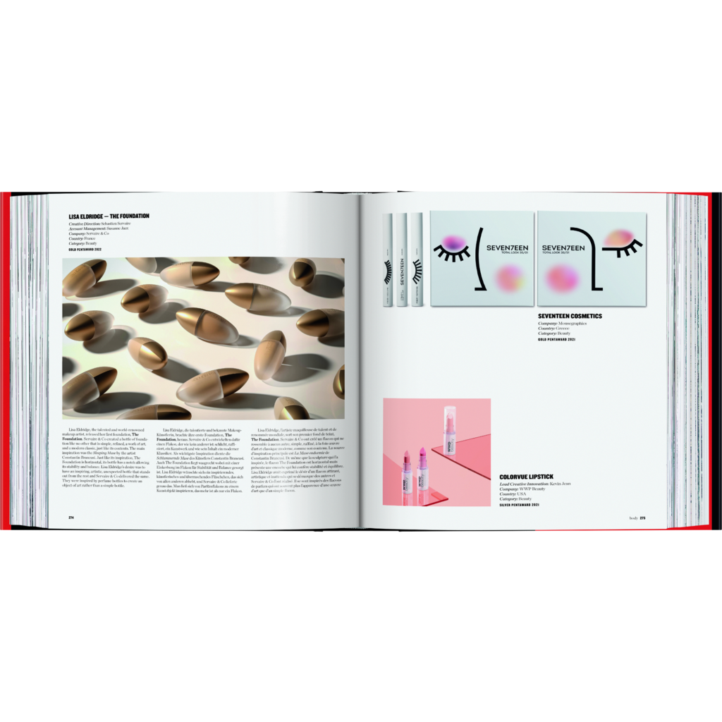 序文や製品説明、豊富な画像からなる本書は、飲料、食品、ボディ、持続可能なデザイン、コンセプト、ラグジュアリー、その他の市場の主要な8部門およびサブカテゴリー80以上から、60か国以上の全受賞者600名以上の作品が掲載されています。