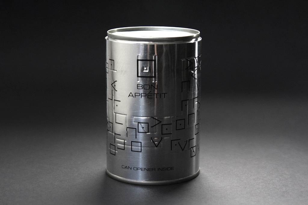 The packaging project uses a tin can to symbolise the vicious cycle of war and famine, where access to food is obstructed. Instead of containing food, the can holds a can opener, referencing the historical irony that while tin cans were developed during the Napoleonic Wars to solve food supply issues, the can opener came decades later.