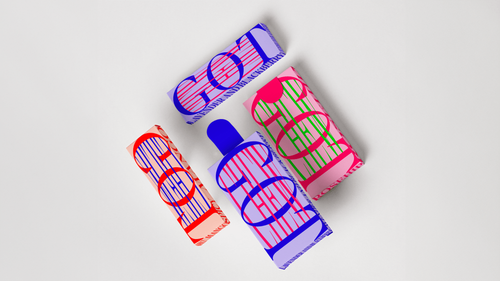 A vibrant gradient illustration injects a sense of playfulness and energy whilst maintaining a refined look. The minimalist typography layout, with exciting lines and sketches, provides just the right amount of dynamic flair without overwhelming the design. This kept the overall feel fun yet luxurious. The shape of the bottle also played a crucial role in enhancing the elegance, elevating the entire visual identity and creating a balance between both vibes.